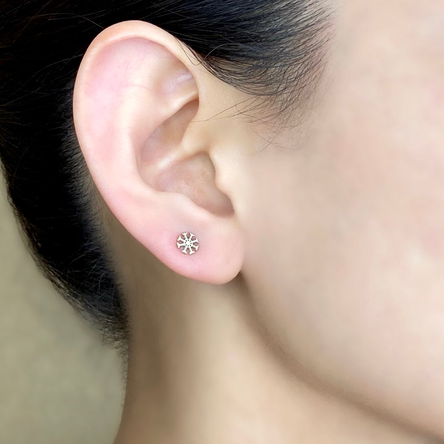 小さいルーンが耳元で輝く、シンプルで美しいスタッドピアスです。